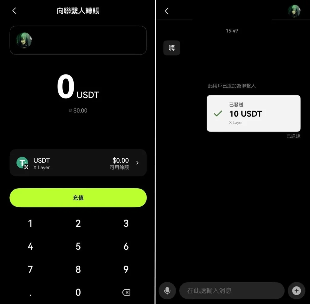 - 聊天即支付:用戶可以直接在聊天介面轉帳,無需向他人索要區塊鏈、地址等資訊。